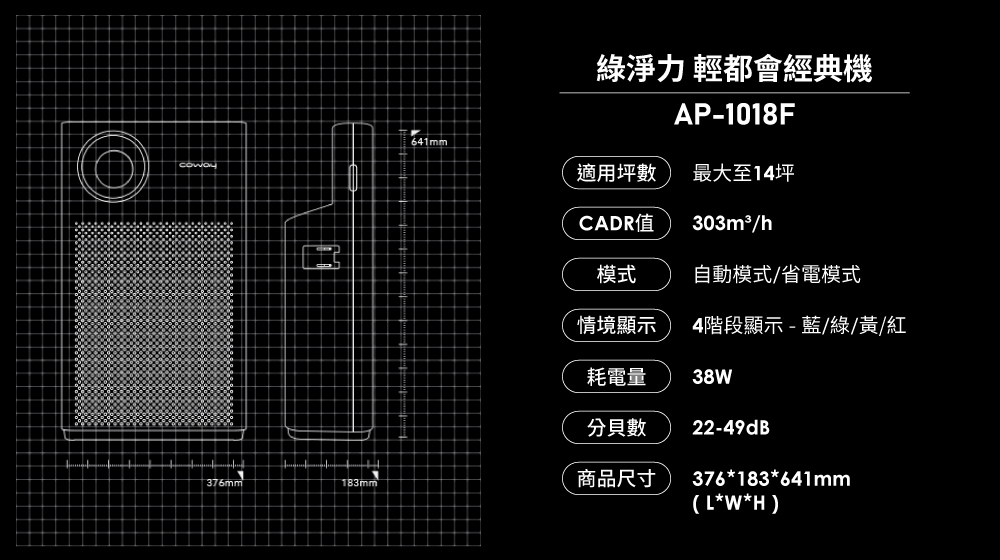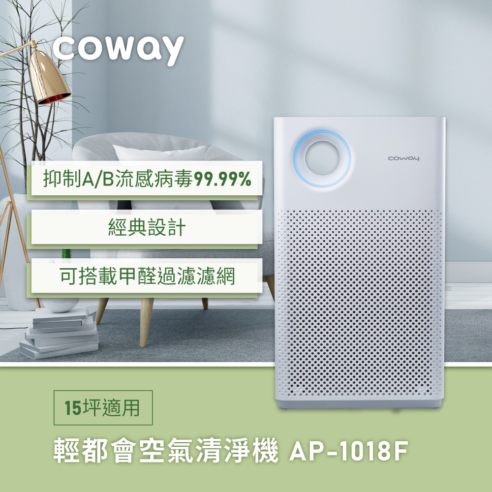 【經認證抑制冠狀病毒】Coway綠淨力輕都會經典機|AP-1018F