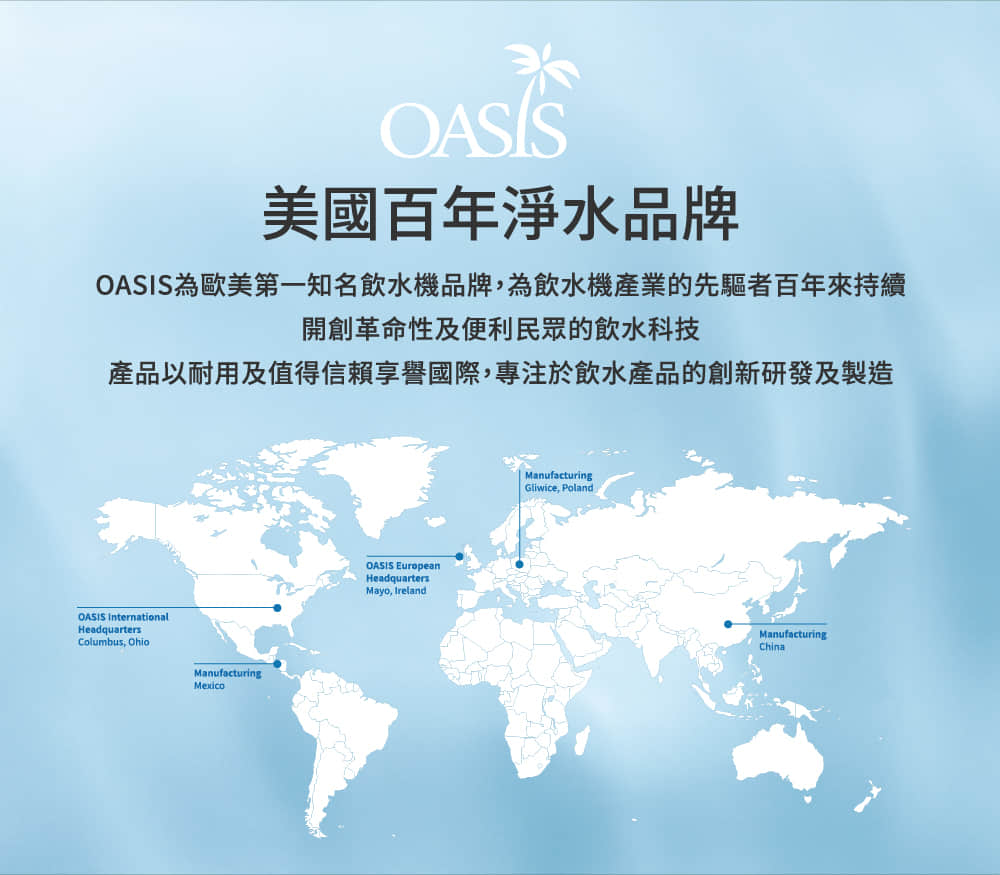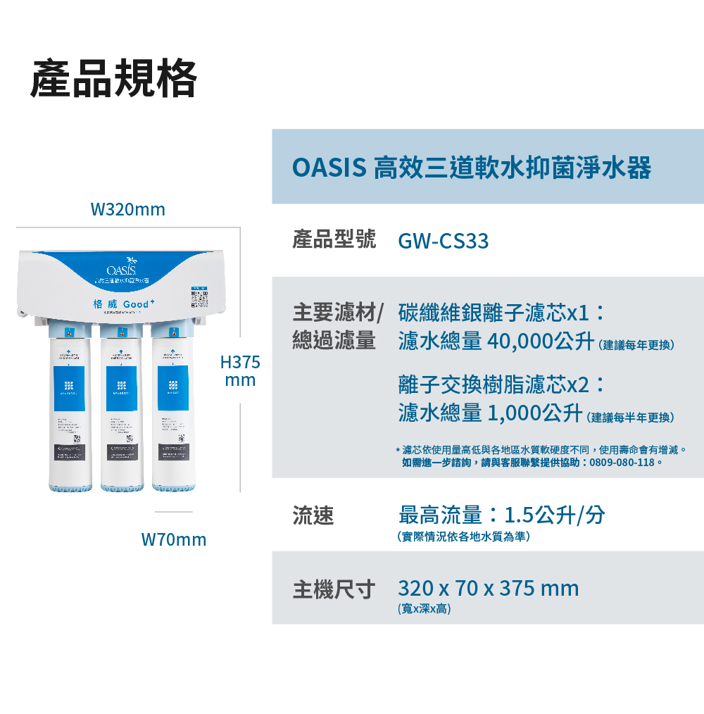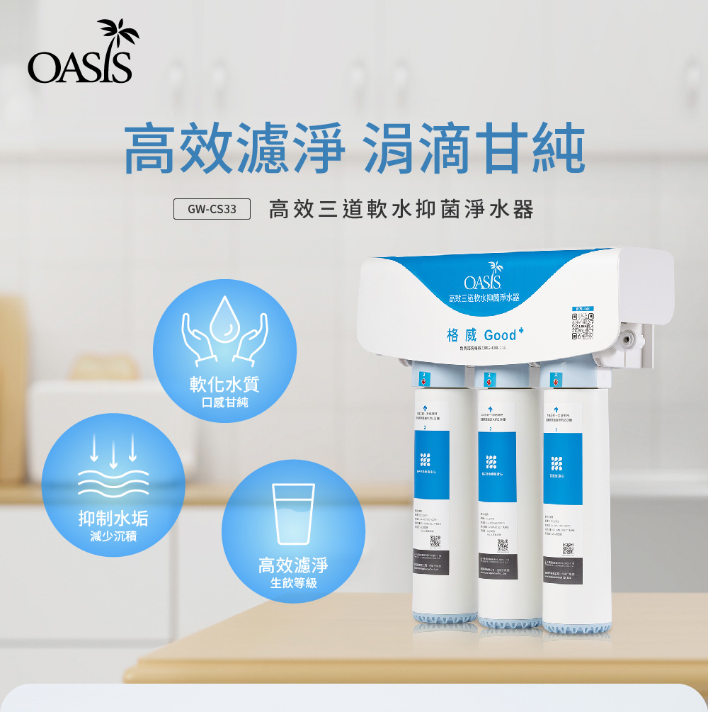 產品名稱: OASIS 高效三道軟水抑菌淨水器