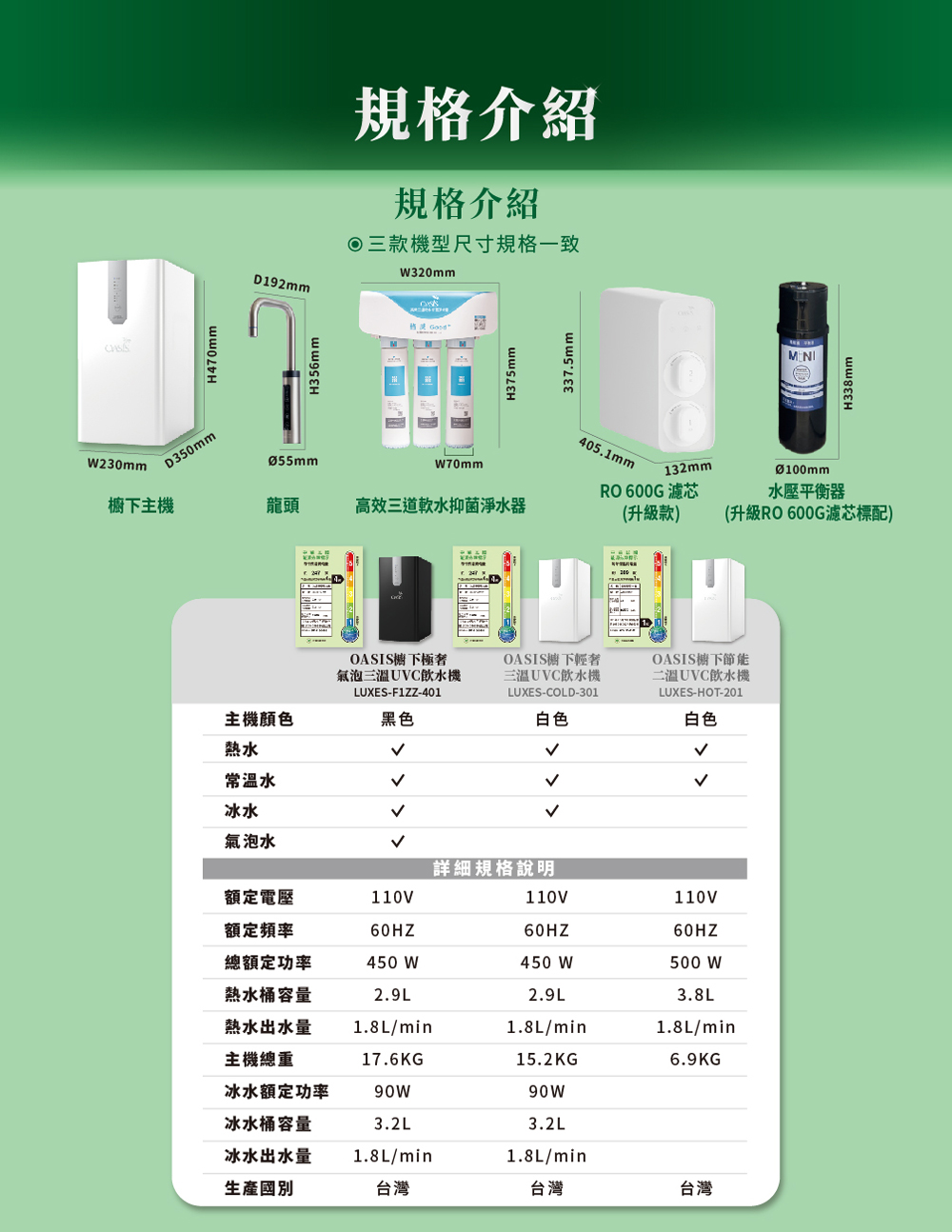 產品名稱: OASIS 櫥下節能兩溫UVC飲水機