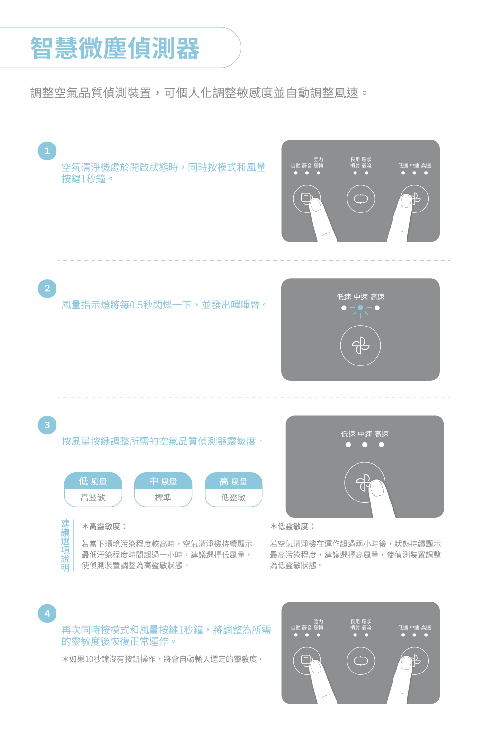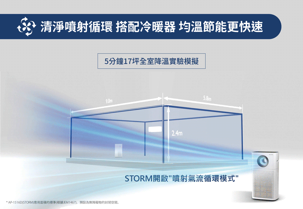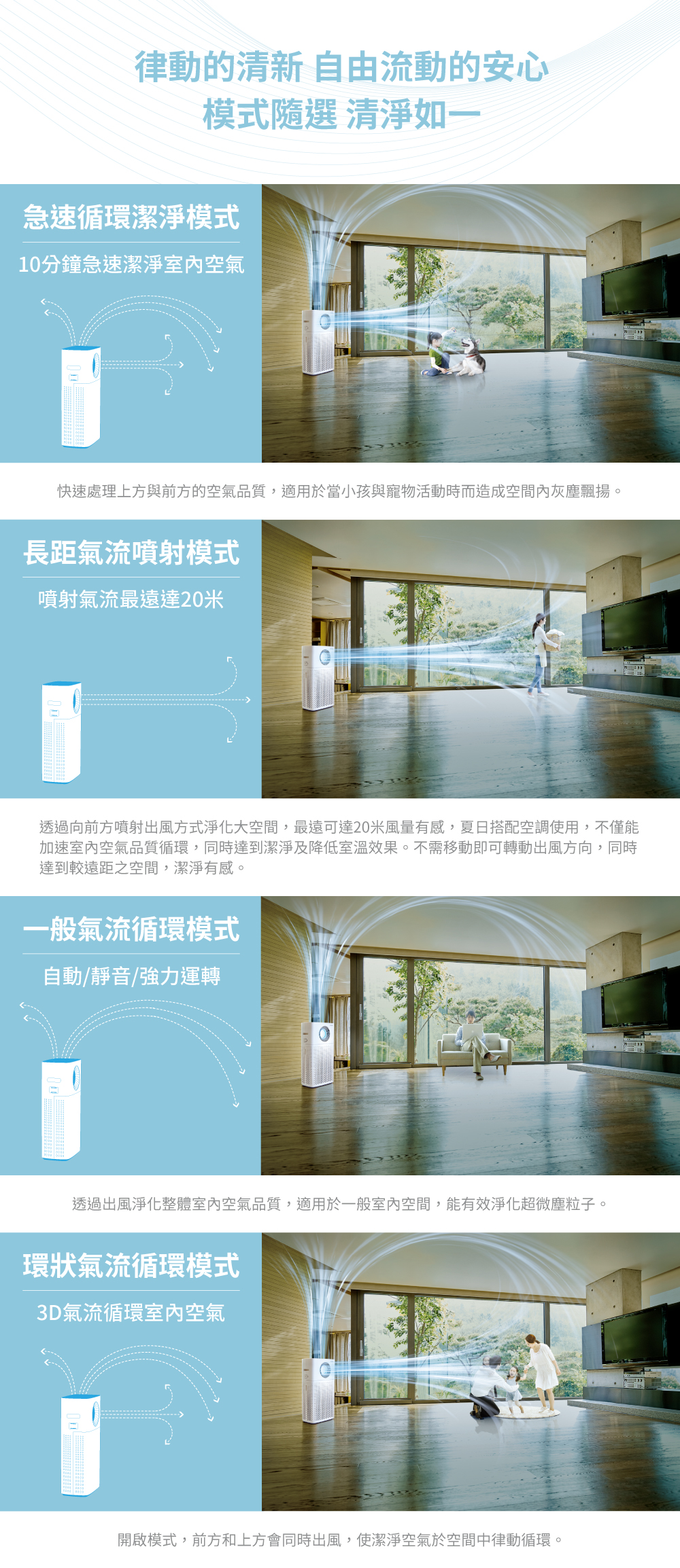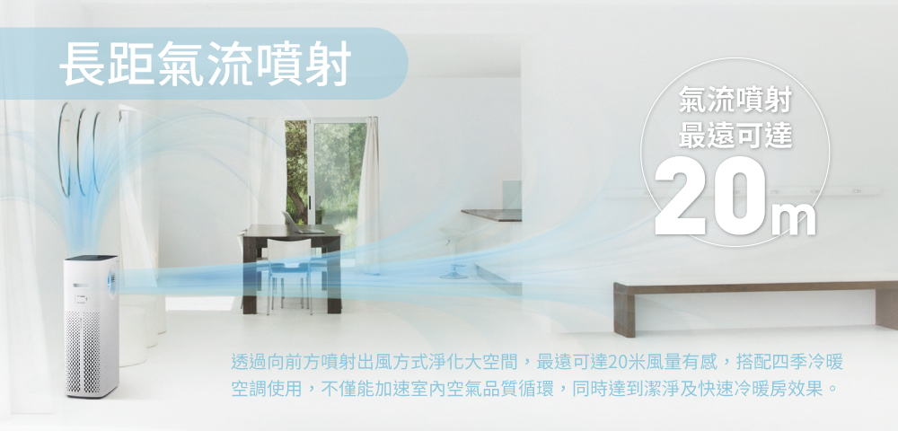 四重氣流模式:長距噴射氣流、環狀氣流、快速循環潔淨