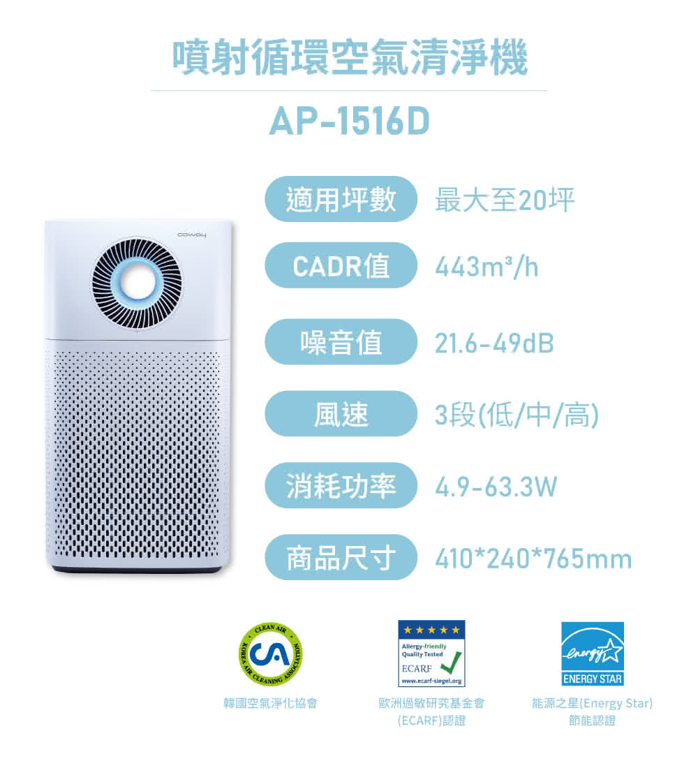 【Coway】VIP會員獨家|綠淨力噴射循環空氣清淨機 AP-1516D(福利品)