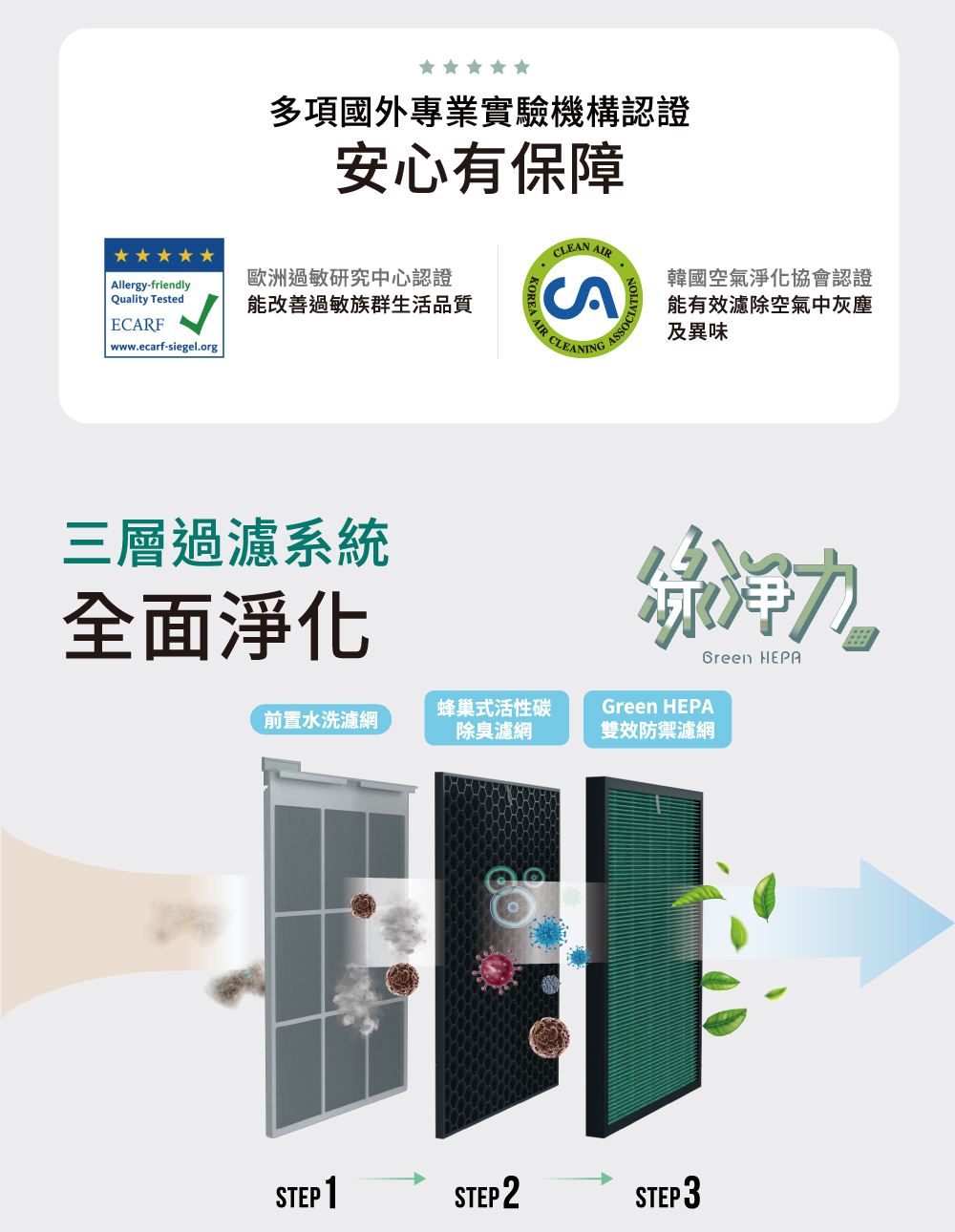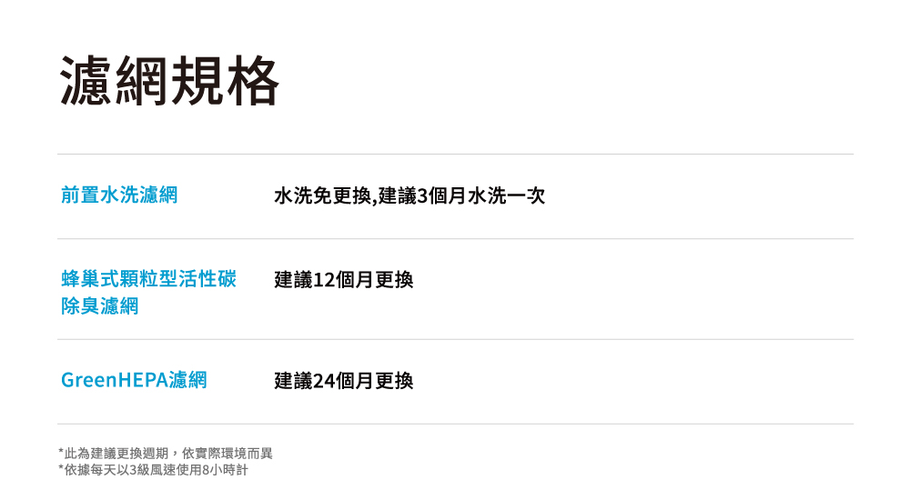配件:前置濾網*1、蜂巢狀活性碳*1、Green HEPA濾網1入