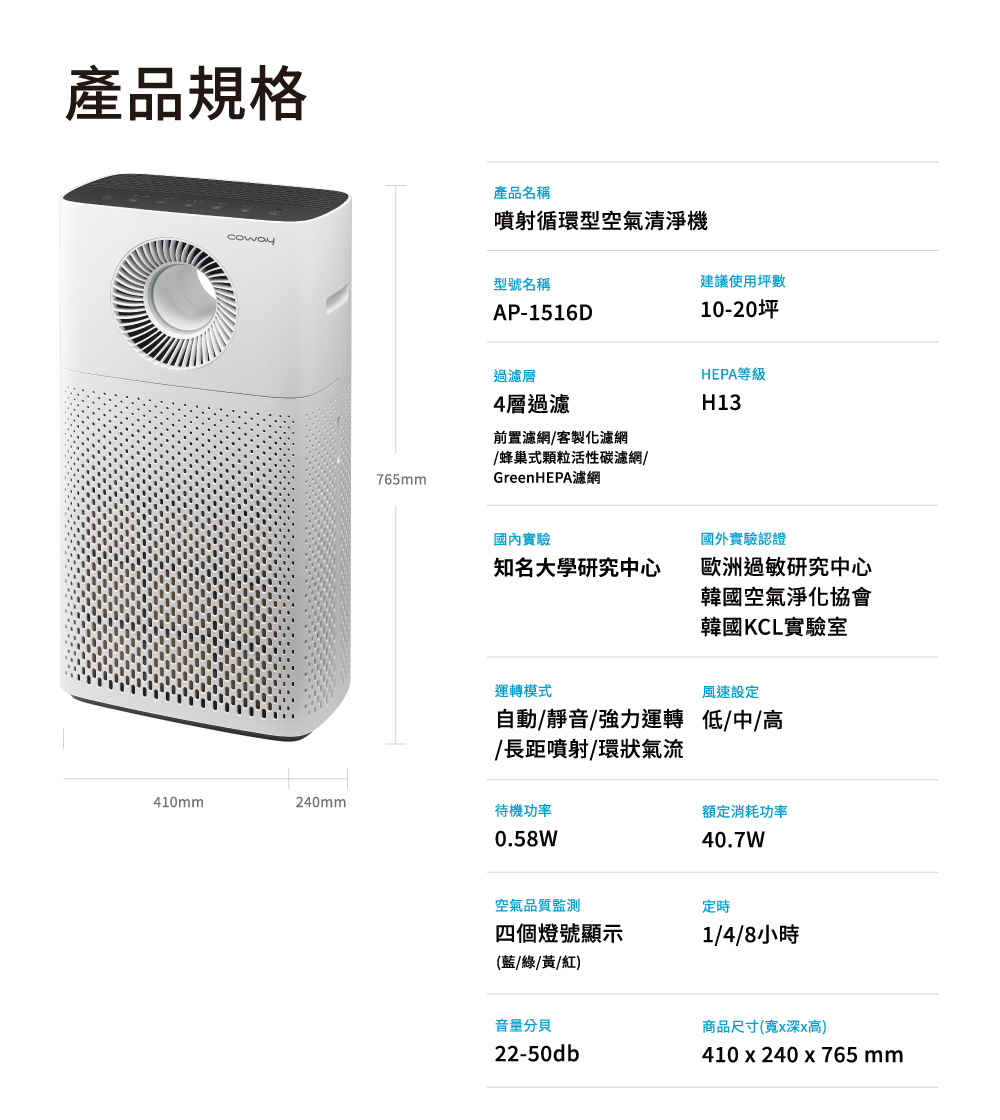 品名:綠淨力玩美雙禦空氣清淨機 AP-1019C